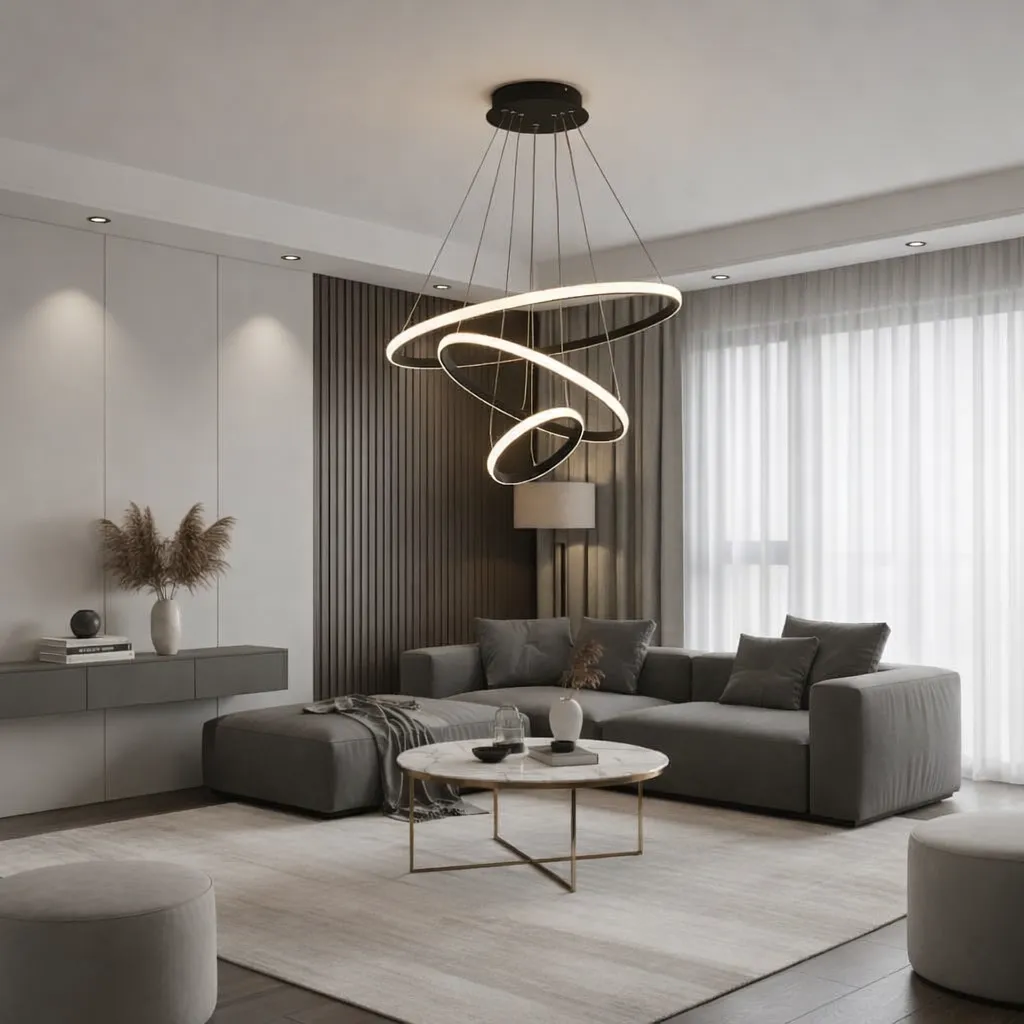 اگر به دنبال خرید لوستر مدرن سه حلقه دایرهای با نور چهارحالته